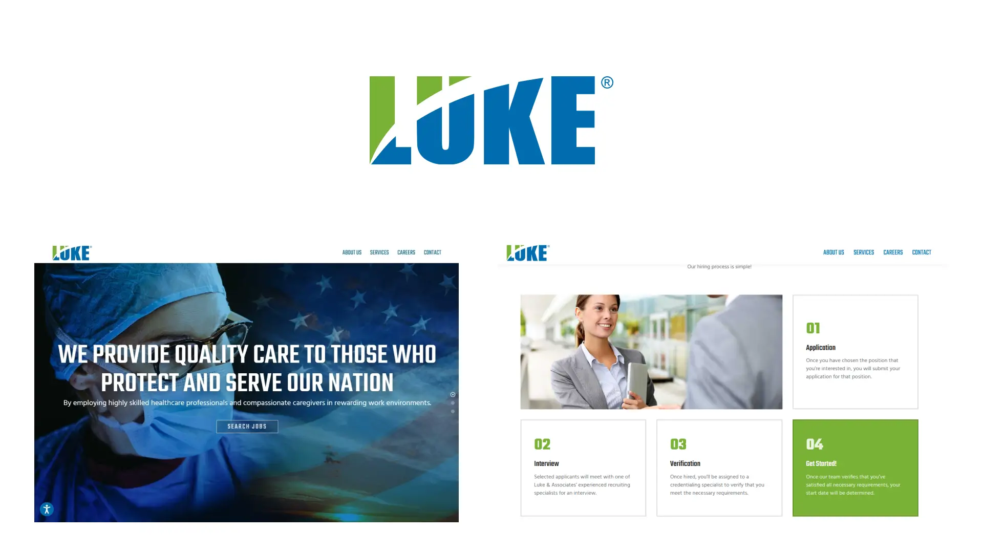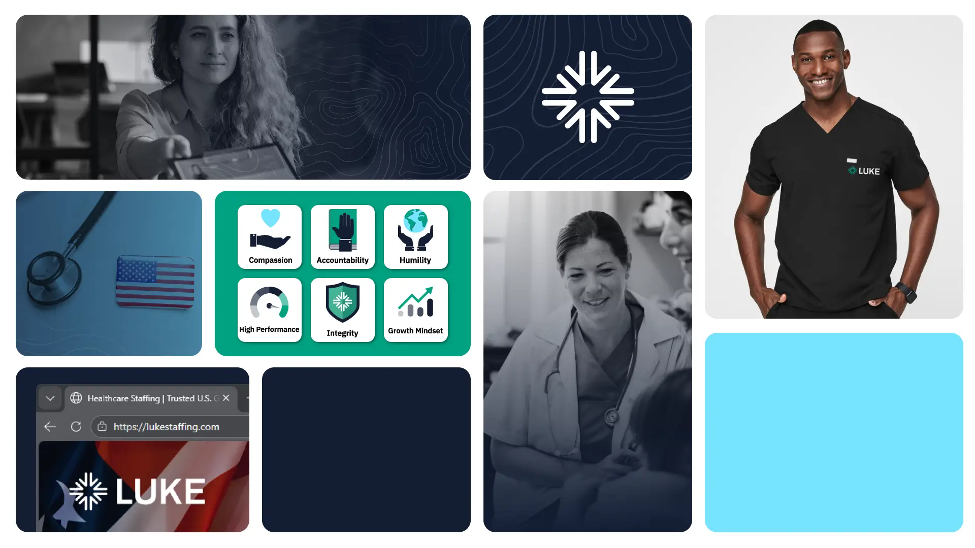 Even the name, LUKE & Associates, was misaligned with the company’s actual function and future direction. As part of the discovery process, we identified the need to reposition the organization as LUKE Staffing, a name that more accurately reflected its role, clarified its offering, and strengthened its credibility within thehealthcare staffing industry.
