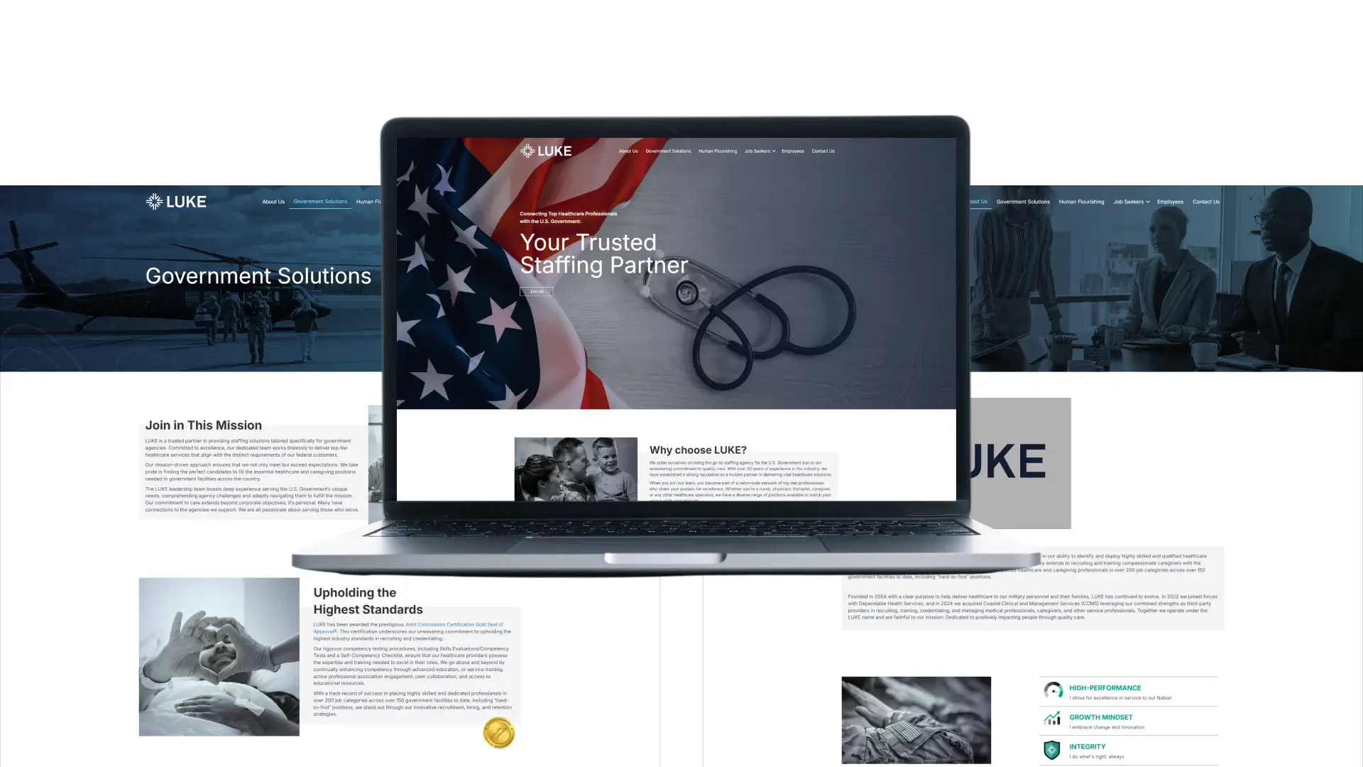 The result was a cohesive, resilient brand that brought clarity and confidence to every aspect of LUKE Staffing’s public and internal presence. The organization launched its new identity and website with a foundation strong enough to support recruitment, contract acquisition, marketing initiatives, and future diversification into private healthcare staffing.